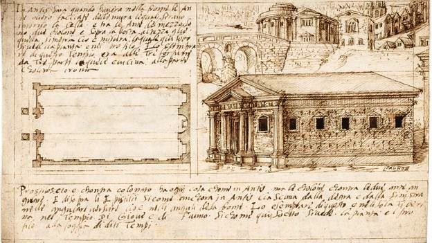 Para Vitruvio, el templo era el edificio supremo ya que estaba cerca de Dios: un cuadrado formaba el piso, un círculo, la cúpula.