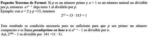 Además de los números de Mersenne, se tienen los números de Fermat: