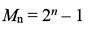 Un poco de reflexión basta para convencerse de que si Mn es primo, hablamos entonces de un primo de Mersenne, entonces n ha de ser primo. Se conocen sólo 51 primos de Mersenne aunque se conjetura, de nuevo, que existen infinitos de ellos. El primo más grande conocido hasta la fecha es de Mersenne; se trata de M82589933, con 24 millones de cifras.