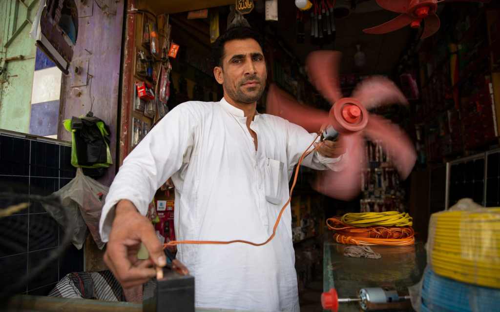 La solución para algunos es un panel solar, aunque a £ 36 cada uno es caro para muchos. También hay disponibles baterías chinas baratas. «Todo el mundo necesita electricidad aquí. No es para la televisión, es para mantener la calma», dice un comerciante de artículos eléctricos llamado Mohammad Iqbal.