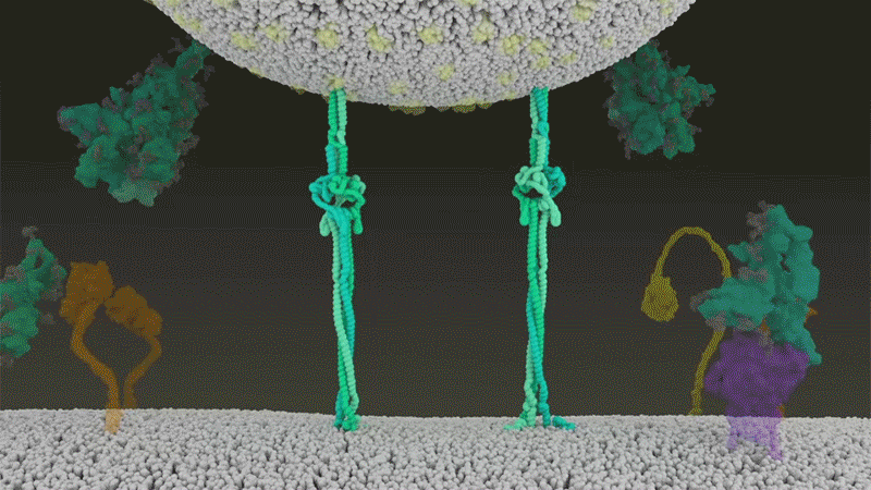 Una vez que los picos virales se unen a ACE2, otras proteínas en la superficie de la célula huésped inician un proceso que conduce a la fusión de las membranas viral y celular.