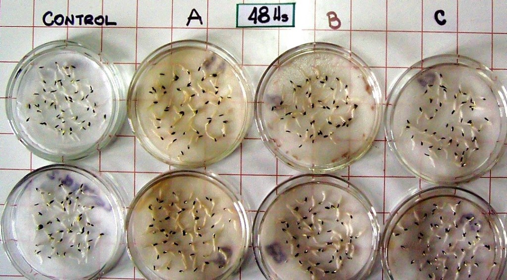 Los biocarbones obtenidos permitieron estimular el crecimiento vegetal, según explica Silva: «Hicimos ensayos en los que pusimos los carbones en agua, los dejamos una noche y después se usó el agua para sembrar en cápsulas de petri unas semillas de lechuga. Las medimos a las 24, 48 y 72 horas y se comparó con otras semillas que se regaron con agua normal y ahí se vio que la cáscara del biocarbón estimulaba la enlongación de tallos y raíces, obteniendo resultados de entre un 50 y un 100% más grandes que en el grupo de control».