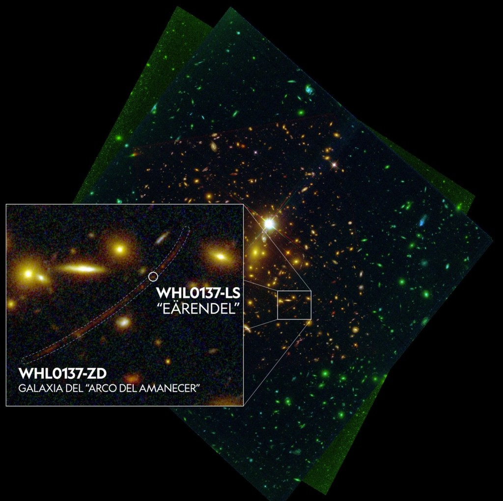 La estrella recibe el sobrenombre de Earendel, una palabra del inglés antiguo que podría traducirse como «estrella del amanecer» o «luz naciente». Se originó tan sólo 900 millones de años después del Big Bang; la anterior poseedora del récord, apodada Ícaro, existió aproximadamente 4.300 millones de años después de ese evento explosivo. Eso significa que Earendel existió poco después de que el universo surgiera de una era de oscuridad, cuando algunas de las primeras galaxias estaban creciendo y evolucionando.