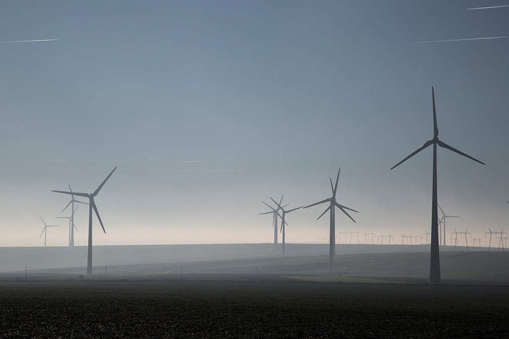 Estos molinos de viento en Rumania son parte de la «Estrategia Europa 2020», un movimiento hacia una economía baja en carbono más ecológica y competitiva que hace un uso eficiente de los recursos y es resistente al riesgo climático.