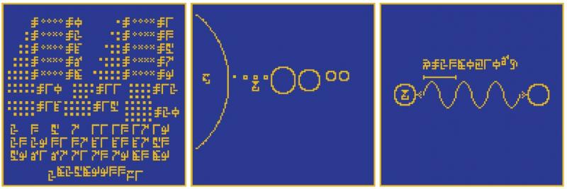Casi todos los mensajes que hemos enviado al espacio hasta ahora comienzan con un intento de establecer puntos en común por medio de las matemáticas y la ciencia básica, que presumiblemente le resultarán familiares a cualquier especie extraterrestre lo bastante avanzada como para recibir una señal de radio. Pero los científicos deben decidir cómo codificar esos conceptos. En vez de emplear sistemas numéricos o lenguajes humanos arbitrarios, muchos proyectos (incluido el «Faro de la Galaxia») optan por presentar el mensaje como un mapa de bits, una imagen pixelada creada a partir de código binario.