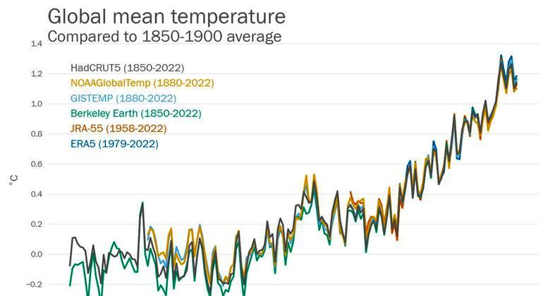 Para llegar a sus conclusiones, la agencia de la ONU cotejó y comparó conjuntos de datos meteorológicos de la Administración Nacional Oceánica y Atmosférica de Estados Unidos (NOAA), el Instituto Goddard de Estudios Espaciales de la NASA (NASA GISS); el Centro Hadley de la Oficina Meteorológica del Reino Unido y la Unidad de Investigación Climática de la Universidad de East Anglia (HadCRUT); el grupo Berkeley Earth, el Centro Europeo de Previsiones Meteorológicas a Medio Plazo y su Servicio de Cambio Climático Copernicus; y la Agencia Meteorológica de Japón (JMA).