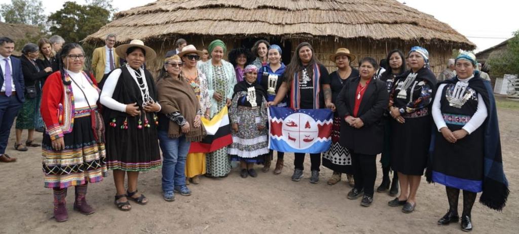 Mohammed se reunió además con lideresas de distintas comunidades indígenas en el país, Mapuche, Rapa Nui, Licanantay (Atacameños), Aymara, Diaguita, Chango, Quechua, Kawéskar y Colla, en el Centro Ceremonial Mahuidache, comuna de El Bosque, espacio de incidencia social centrado en la promoción de los derechos de los pueblos indígenas y su participación.