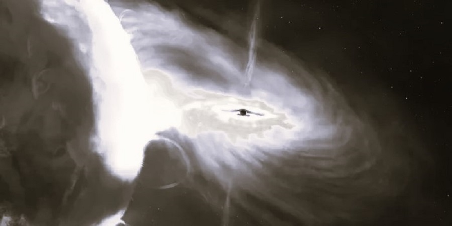 Una gigantesca bola de fuego, cien veces más grande que el sistema solar, se cree que fue causada por gas siendo absorbido por un agujero negro supermasivo.