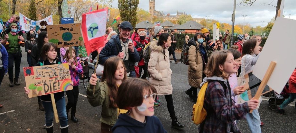 Una manifestación en favor de la acción por el clima, encabezada por activistas climáticos jóvenes en la ciudad de Glasgow en Escocia, y organizada al margen de la Conferencia de las Naciones Unidas sobre el Cambio Climático de 2021 (COP26).