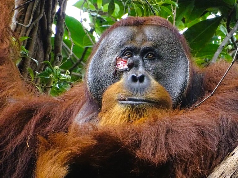 Un orangután de Sumatra sorprendió a los científicos cuando lo vieron tratando una herida abierta en su mejilla con una cataplasma hecha de una planta medicinal. Es el primer registro científico de un animal salvaje curando una herida utilizando una planta con propiedades medicinales conocidas. Los hallazgos fueron publicados en Scientific Reports.