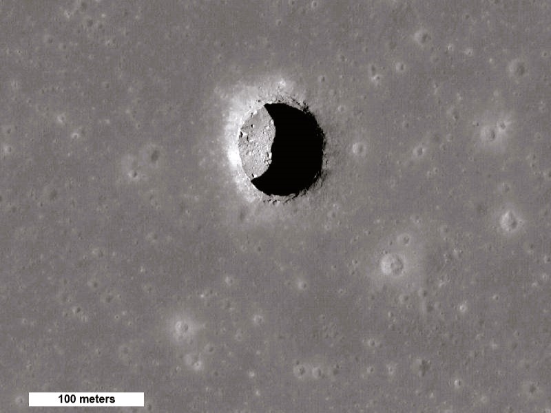 La fosa de Mare Tranquillitatis analizada es la más profunda conocida de la Luna, con un radio de aproximadamente 100 metros, paredes verticales o con salientes y un suelo inclinado.