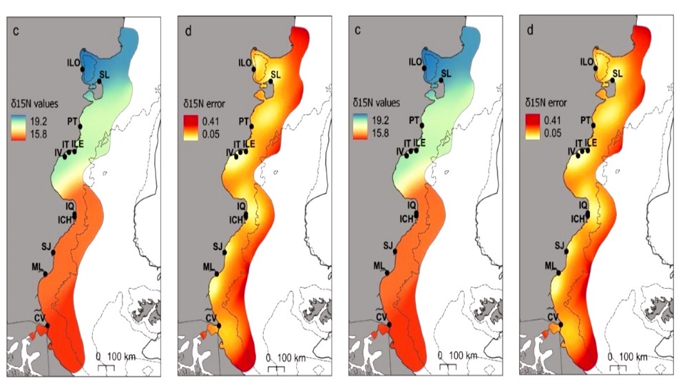 Gonzalez, J. F., Sánchez‐Carnero, N., Frere, E., Yorio, P., & Ciancio, J. E. (2024). Developing δ15N and δ13C isoscapes using whole blood from Magellanic penguins, Spheniscus magellanicus. Rapid Communications in Mass Spectrometry, 38(18), e9860. https://doi.org/10.1002/rcm.9860