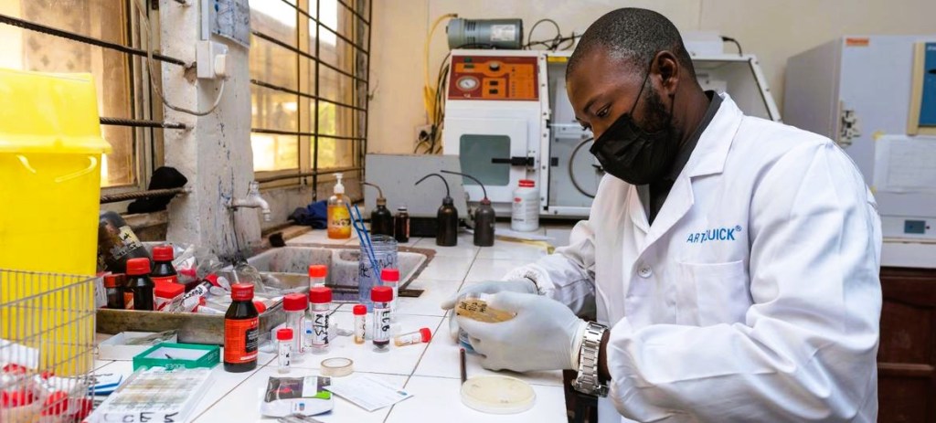 Un médico examina una muestra en un laboratorio de microbiología de un hospital universitario de Nigeria.