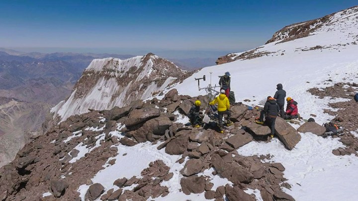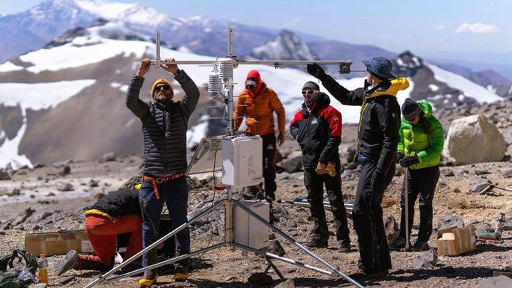 Un equipo internacional instala cinco estaciones meteorológicas en la montaña más alta de América. Datos en tiempo real para entender el cambio climático y proteger a quienes la desafían