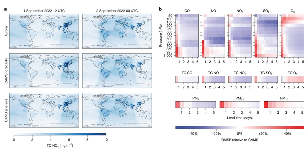 Aurora combina redes neuronales de última generación con arquitecturas diseñadas para procesar rápidamente enormes volúmenes de información. «Cada experimento de ajuste fino del modelo requirió entre cuatro y ocho semanas con un equipo reducido de ingenieros, frente a los años que pueden llevar los modelos dinámicos tradicionales», señalan los autores. Esta rapidez no sacrifica exactitud: en predicción de la calidad del aire, las olas oceánicas y los ciclones, Aurora superó a sistemas operativos especializados, a la vez que redujo en un orden de magnitud el consumo de energía y recursos computacionales.